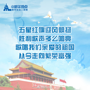 歌唱祖国,这些歌词你熟悉么? 新华视点 2017.10.0120:01 关注 #我为祖国打call#【歌唱祖国,这些歌词你熟悉么?】今天(2017年10月1日),是新中国68岁华诞。哪些爱国歌曲让你印象深刻?唱一首歌,祝福祖国。转发接龙,说出你心中的那句歌词!