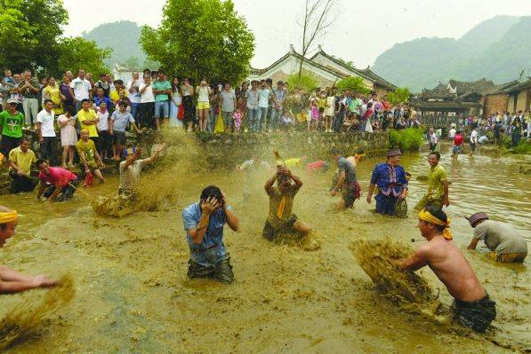 大家在泥地里痛快的玩闹着,像是傣族的泼水节,但比泼水节更刺激更狂野一些。