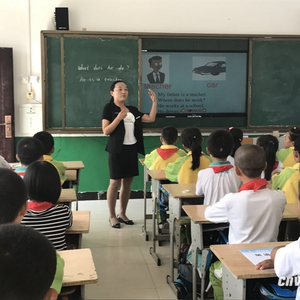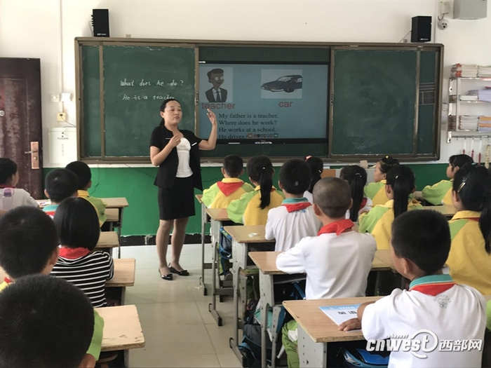 英语课上,当杨青把U盘插在黑板下方的凹槽,提前做好的课件内容便显现出来。如今渭南市官底镇中心小学每个教室都配备了这样的数字化黑板,通过与多媒体计算机连接,配有图片、语音和视频的英语教学丰富生动,学生们看得有滋有味。