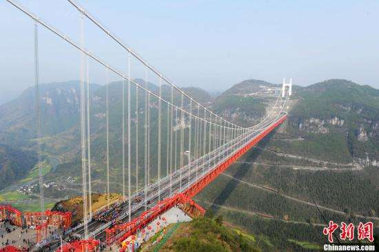 让这座桥声名远扬的还有:桥下方是德夯苗寨,那个村寨一片郁郁葱葱,人们可在桥上一睹壮美景色。(编译/王超)