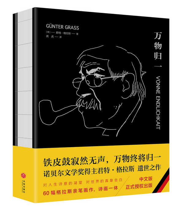 刚从气候宜人的德意志回来,就被成都百年不遇的秋热击昏了。忍受了两个星期,终于回到秋凉的日子。君特·格拉斯的遗著《万物归一》的译稿也告杀青。当我停下键盘的敲击,拿起摆在书桌上的《万物归一》的德文原著,作为一个读者再次欣赏它,多么美丽,多么令人赏心悦目!作为文学家和艺术家,格拉斯在他这部绝唱中再次展现出大师风范。象牙色的硬皮封面,用手指抚摸,感到亲切。封面与封底是格拉斯的一幅素描画,七片硕大的羽毛散落在封面与封底,颜色只有黑与灰,羽毛生动,轻盈欲飞。羽毛是鸟的生命,也是人之生命的象征。格拉斯在《万物归一》这部书中,有好几处写到鸟儿,羽毛的画更是穿插在整部书里。格拉斯对于鸟儿有一种溢于言表的特别情感,而鸟儿的生命是借助羽毛可以不屑于与尘世俗人为伍的,鸟儿失去了羽毛,也就失去了生命。格拉斯在自己的遗著里静观鸟儿飘落的羽毛。
