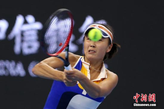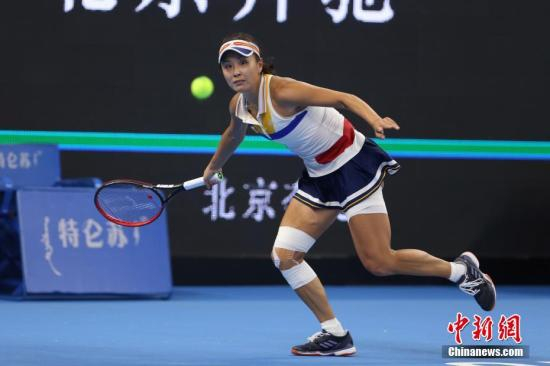 10月2日,彭帅在比赛中。当日,正在北京举行的2017年中国网球公开赛女单首轮比赛中,中国金花彭帅苦战三盘,战胜美国选手罗杰斯,晋级下一轮。中新社记者 韩海丹 摄
