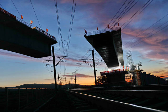9月17日,河北怀来县。作为2022年冬奥会的交通干线,京张高铁土木特大桥完成上万吨桥体的高空转体,精准对接,引发声声赞叹。