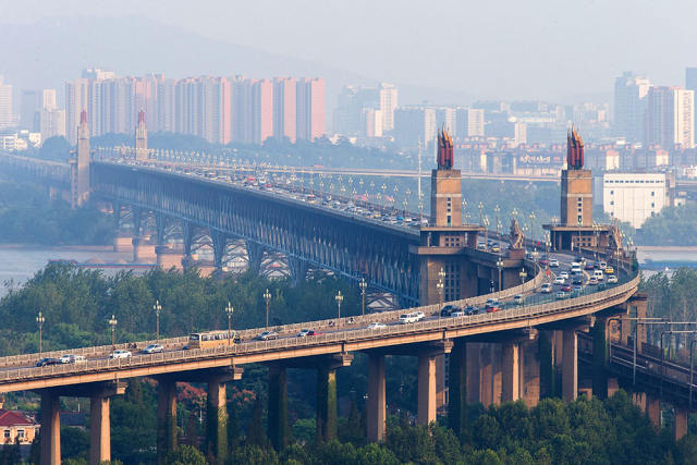 2016年10月8日拍摄的南京长江大桥。 (新华社发 苏阳摄)武汉长江大桥、南京长江大桥的先后通车,仍难缩小中国桥梁与世界先进水平的巨大差距。