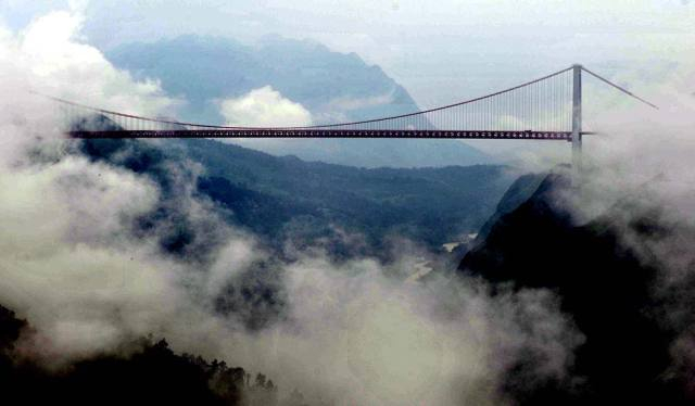位于贵州安顺的坝陵河大桥(2010年7月23日 新华社记者 杨楹摄)。目前我国公路桥梁总数已超过80万座,铁路桥梁超过20万座。中铁大桥局一家企业修建的桥梁长度,累计起来相当于北京往返上海的距离。