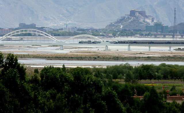 2006年7月1日由拉萨发出的“藏2”次庆典列车通过拉萨河特大桥。 (新华社记者 索朗罗布摄)如今,按中国标准建设的“中国桥”已遍布亚洲、非洲、欧洲等大洲。位于印尼的泗马大桥完全采用中国标准规范设计、施工,首次实现桥梁领域的中国标准走出国门。