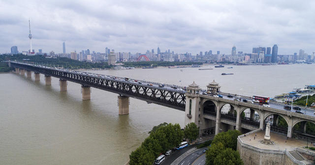 航拍的武汉长江大桥(2017年9月27日 新华社记者 熊琦摄)。60年间,武汉长江大桥经历近百次大小船舶撞击,依旧坚固如初。今年4月,武汉长江大桥养护“体检报告”显示:目前全桥无变位下沉,桥墩可承受6万吨压力、可抗8级以下地震和强力冲撞,2.4万多吨钢梁和8个桥墩无裂纹、无弯曲变形,百万颗铆钉未发现松动。