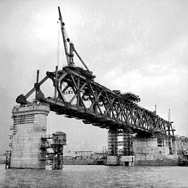 建设中的武汉长江大桥在进行钢梁架设(资料照片 新华社发)。担任武汉长江大桥施工组织设计小组组长的赵煜澄老人回忆,1955年,在新中国一穷二白的条件下,武汉长江大桥动工建设。大桥钢梁拼装两个月后,发现固定桥梁杆件的上万颗铆钉,与孔眼间有2毫米缝隙,出现松动,“拼装马上停工,直到新铆钉填满缝隙,先期铆钉全部弃用”。