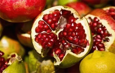 中秋正是石榴成熟时。因其红似玛瑙,白若水晶,入口如晶粒玉浆,成为桌上供品之一,象征长寿、团圆和吉祥。
