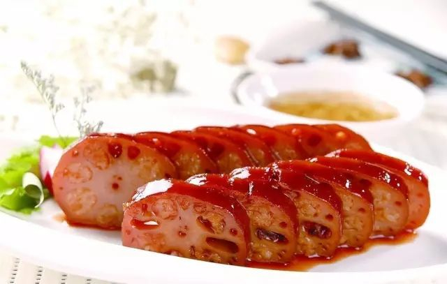 中秋食藕,是寄团圆之意。以糯米填充莲藕,再以桂花蜜淋之,米香、藕香、桂花香,香浓入口,意喻甜甜蜜蜜。