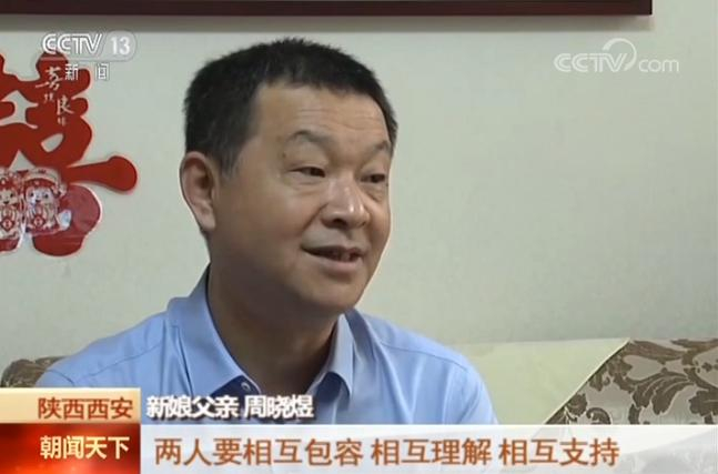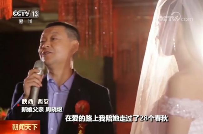陕西西安 新娘父亲 周晓煜:今天,在爱的路上我陪她走过了28个春秋,但我不认为这是一个爱的交接,这更应该是咱两个爱她的男人的强强联合。