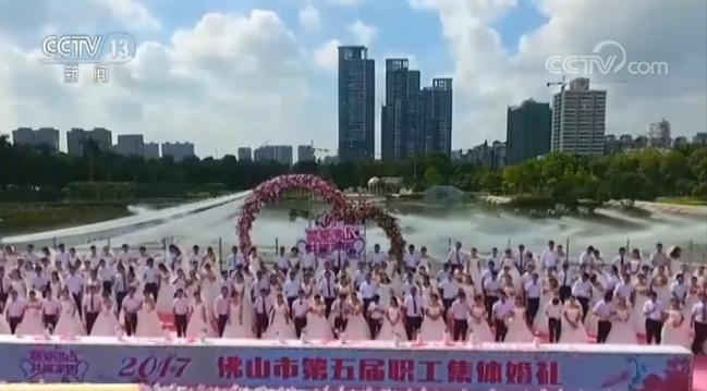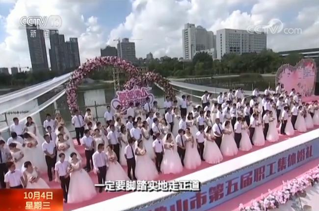 9月29日,广东佛山市的99对新人举行了集体婚礼,他们都是来自地铁、工厂、护士、教师一线的职工。