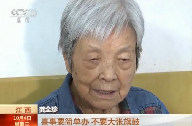 龚全珍:甘祖昌主张这样,喜事要简单办,不要大张旗鼓。他不怕人家笑话,在乡下结婚,还是吹吹打打,还是要摆给人家看一看,她娘家有好多东西,我们家就不跟这个风。