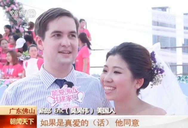 新郎Eric(莫昊伟) 美国人:我第一次认识她的爸爸的时候,她爸爸说,如果是真爱的话,我就同意,如果是不够真诚的话就sorry,他爸爸很传统的,告诉我很多的要我做的,所以我越来越明白。