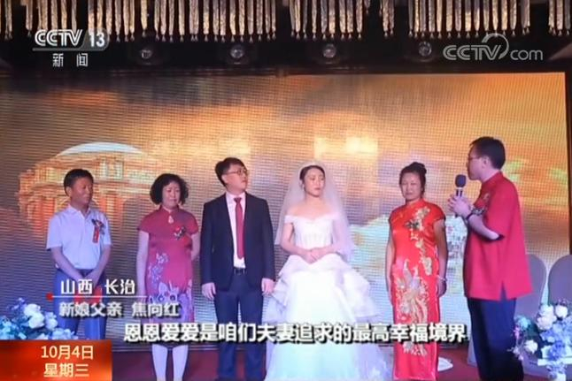 山西长治 新娘父亲 焦向红:恩恩爱爱是夫妻追求的最高境界,就是一个恩,一个爱。所谓恩,就是感恩,就是付出,就是无条件地对对方好。所谓爱,就是一种幸福的感受。那么,把恩放在前面,把爱放在后面,就是告诉我们,首先要对对方好,无条件的付出,才能获得无限的爱。