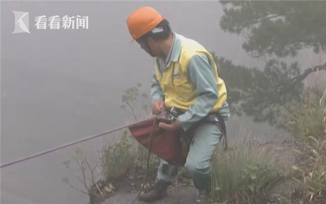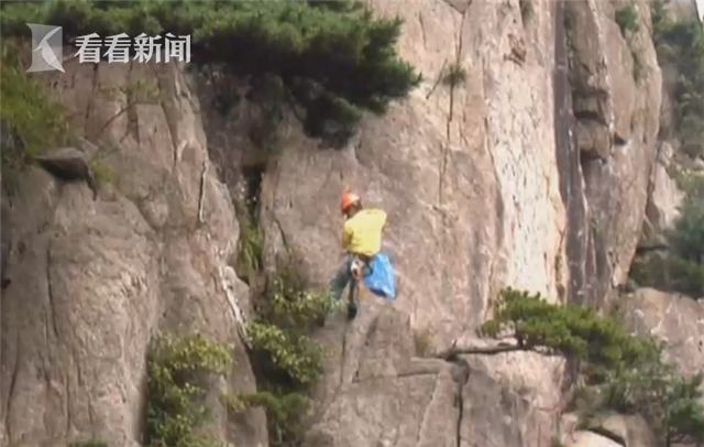 还忍心扔吗?黄山放绳工在悬崖上日捡垃圾上千斤