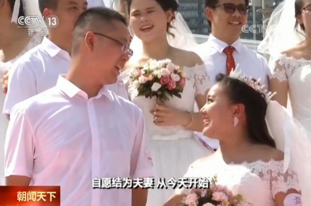 9月29日,广东佛山市的99对新人举行了集体婚礼,他们都是来自地铁、工厂、护士、教师一线的职工。