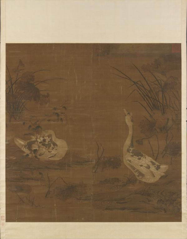 宋人《画秋塘双雁》轴