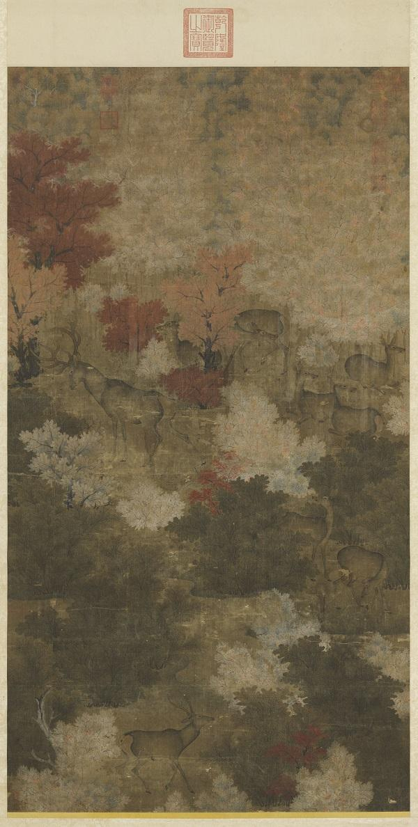 五代人《秋林群鹿》轴