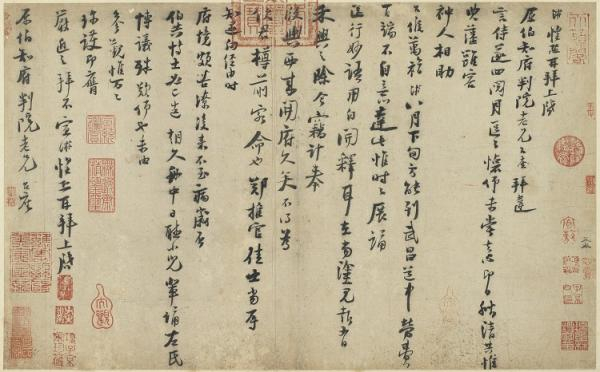 陆游(1125-1209)《致仲躬侍郎尺牍》书于淳熙九年(1182),朱熹(1130-1200)《致会之知郡朝议尺牍》书于绍熙五年(1194),前者亦称《秋清帖》,后者亦称《秋深帖》。《秋清帖》提及浙东水旱灾造成地方严重饥荒,忧虑之情溢于言表;《秋深帖》则忧心解印后之接任者能否妥善处理复杂的地方事务。陆朱二人个性虽截然不同,但皆忧国忧民,力主抗金,收复中原,而屡遭主和派排挤打压,彼此惺惺相惜。本讲分别由二帖切入,分析陆放翁与朱晦翁之际遇、书风与交往情谊。