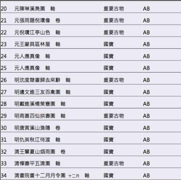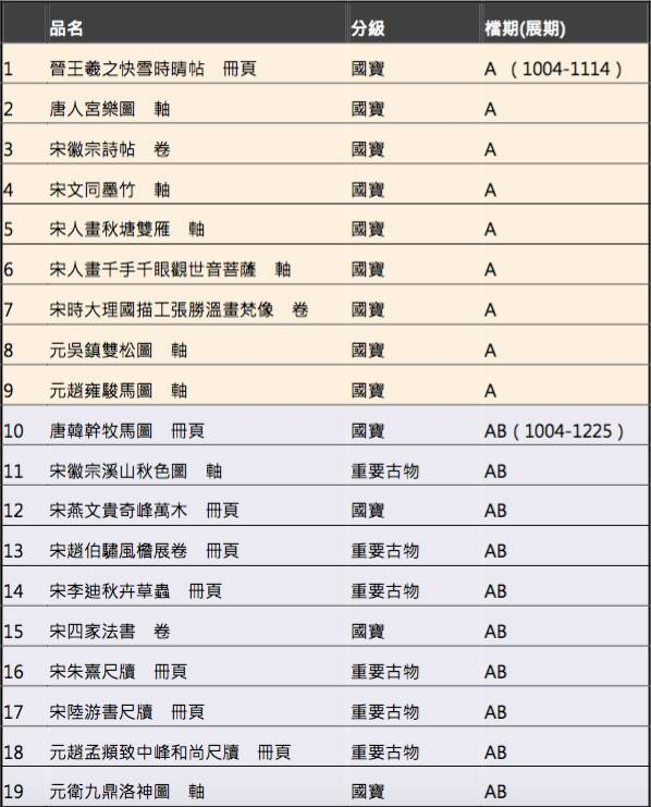 另外,此次特展高等级书画名品数量之多也引人瞩目。据悉,台北故宫博物院典藏的书画,依其艺术性的高下,分为“国宝”、“重要古物”和“一般古物”三种等级。截至2017年7月为止,经指定公告的书画国宝184组件,重要古物352组件。而此次特展即是以文物分级制度为基本框架,精选“国宝”级书画名品34件,“重要古物”级书画11件进行展示。而所谓的“国宝”标准是要具备“历史上不可取代”、“拥有唯一文化意涵”、“独一无二”、“年代久远”等要素。院方同时希望透过书画菁华的展览和诠释,可以加深公众对古物分级制度的了解。