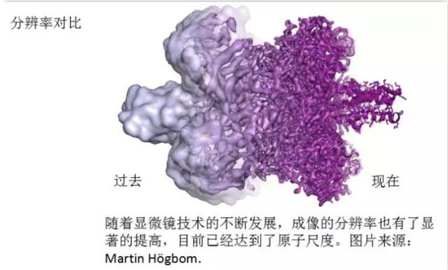 电子显微镜技术面世已久,适用于“无生命”的样品,而因其会发射出破坏性的电子束,并不能适用于生物材料和生物分子的研究。然而在 1990 年,Richard Henderson 使用电子显微镜成功取得了蛋白质的三维结构原子级分辨率成像,这样的进展也证明了电子显微技术的潜力。