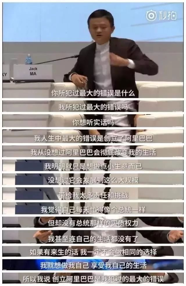 2016年6月17日,马云在俄罗斯圣彼得堡国际经济论坛上发言,表示创立阿里巴巴是自己人生最大的错误。