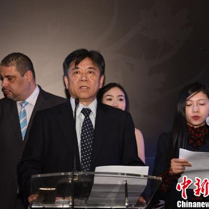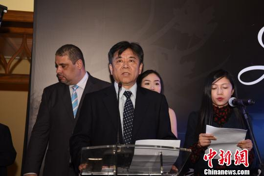 图为巴西圣保罗亚洲文化中心总经理方三京(左二)致辞。 莫成雄 摄