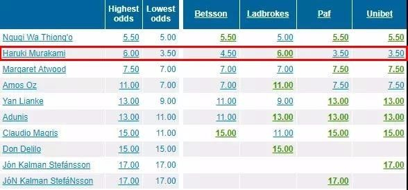 如果你常年关注诺贝尔文学奖的赔率,你会发现,今年的榜单跟去年、前年乃至大前年,都没有什么太大区别。村上春树依然是获奖的大热门