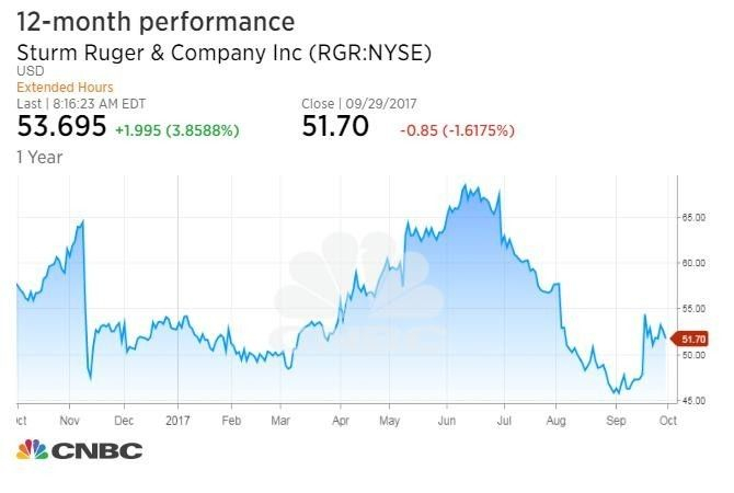 一方面是普通民众的担忧,然而另一方面的现实则是:拉斯维加斯枪击案过后第二天,主要枪械公司的股票大幅上涨。美国规模最大的枪械制造公司Sturm Ruger早盘就上涨了4.7%;最大的手枪制造商Smith & Wesson涨幅4.5%。