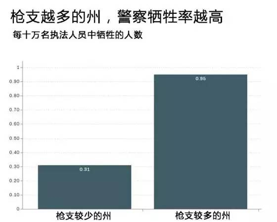 研究者们分析了联邦数据库中关于枪支拥有量与警察牺牲率近15年的数据发现,警察牺牲率与枪支持有率呈正相关关系↓↓↓