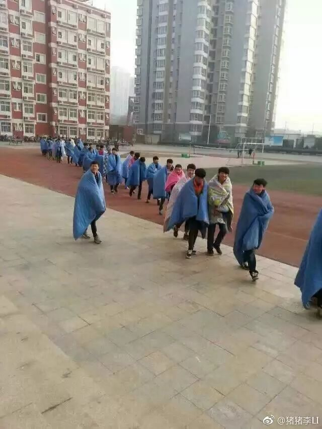 ►男生宿舍违纪 被罚每个人背着被子游操场。那么多评论 应该不会有人看到了吧