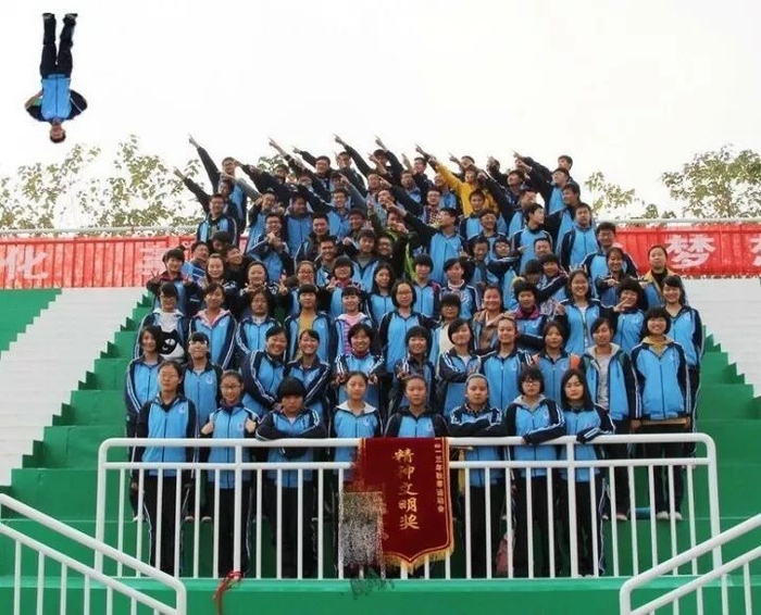 ►当时运动会结束班级合照,班长有事那天没来,不知道谁想的把班长P上去……然后效果如图……