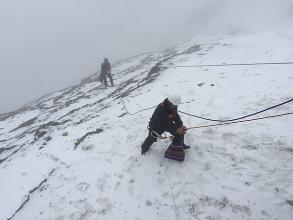 他们绑着绳子去捡垃圾,脚下是万年不化的冰川,身后是数千米高的悬崖。