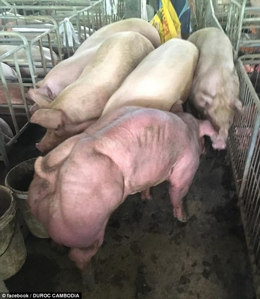 该养猪基地位于柬埔寨的班迭棉吉省,该农场养殖户还在网上发布了一些变异猪的照片和视频,来展示其令人吃惊的肌肉。他们还为客户提供全套服务,包括变异猪的猪肉零售和种猪。此外,该公司还提供假肢、阴茎和公猪精液,以便让养殖户自行培育出变异巨型猪。