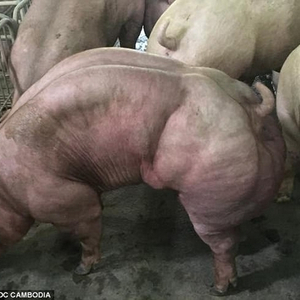柬埔寨一公司培育巨型变异“肌肉”猪遭谴责