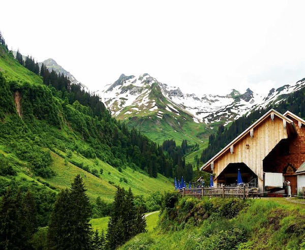 Sennalpe Laufbichl 是我们小小徒步之旅的目的地。这个农场海拔1250 米,正对绿草如茵的山谷,以及山谷后的皑皑雪峰。农场上的几十头奶牛,为饥肠辘辘远道而来的旅行者们提供了美味的奶酪。再来点儿啤酒和酸黄瓜,听着牛铃声,一个完美的阿尔卑斯午后。