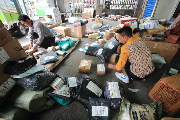 2017年10月6日,浙江绍兴市区一快递点部,快递员加班加点地分拣各种快递包裹,以便及时发送到客户手中。