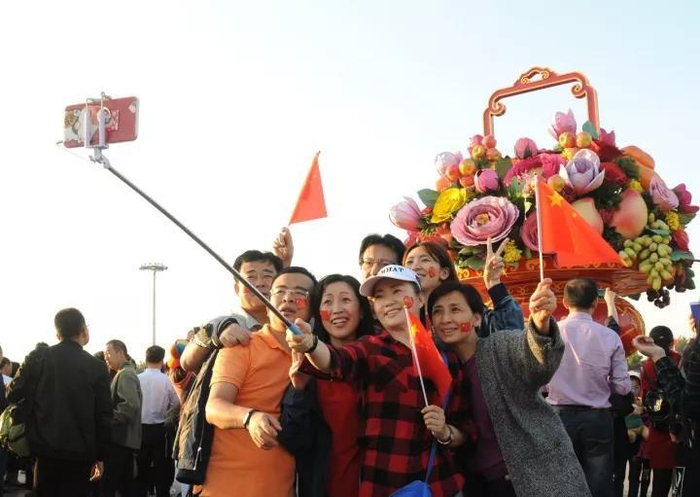 国庆假日期间,北京天安门广场,来自全国各地的游客纷纷用手机及“自拍神器”拍照留影,成为黄金周一道独特有趣的“最强”风景。