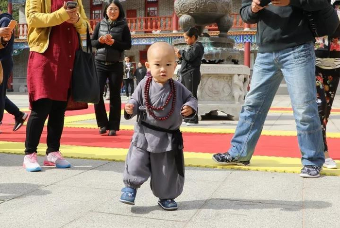 中秋节前一天,辽宁丹东双灵寺祈福活动现场,一位着和尚服挂佛珠的小男孩成为喜庆的焦点。