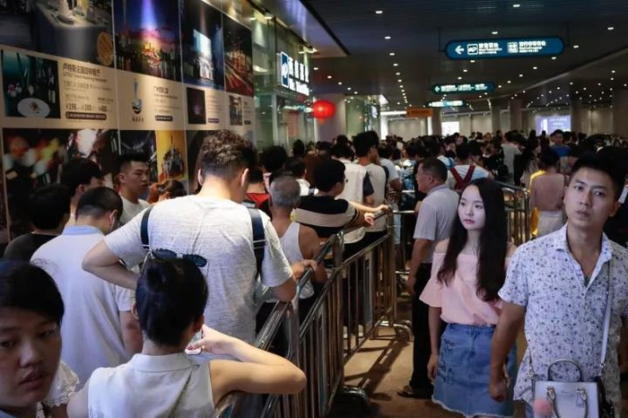 “十一”黄金周期间,广州的地标性建筑“小蛮腰”吸引了成千上万名游客前来参观,游客为一睹其风采排队数小时