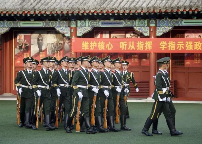 2017年10月3日,北京,下午五点,国旗班的战士们准备收旗仪式。