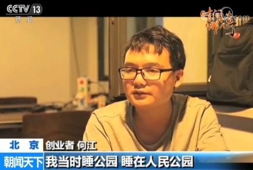 创业者 何江:我去上海出差的时候为了省钱睡在人民公园,睡到半夜就看见几条狗在我面前站着,那个时候其实是有点感悟的,就是说以前上班的时候挺好的,为什么自己这么折腾自己呢,然后就回归到原点。