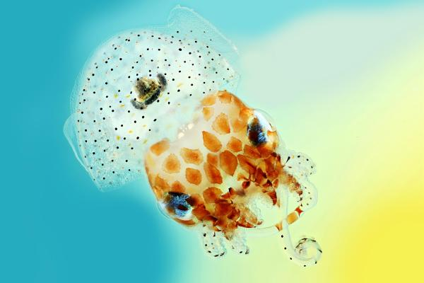 拥有虹彩体色的夏威夷短尾鱿鱼。