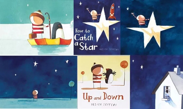给娃读过绘本的家长看到这个小木偶,一定会感到眼熟。对的,这个穿着红白条纹的小男孩是大名鼎鼎的Oliver Jeffers系列绘本的主角。绘本见下图。