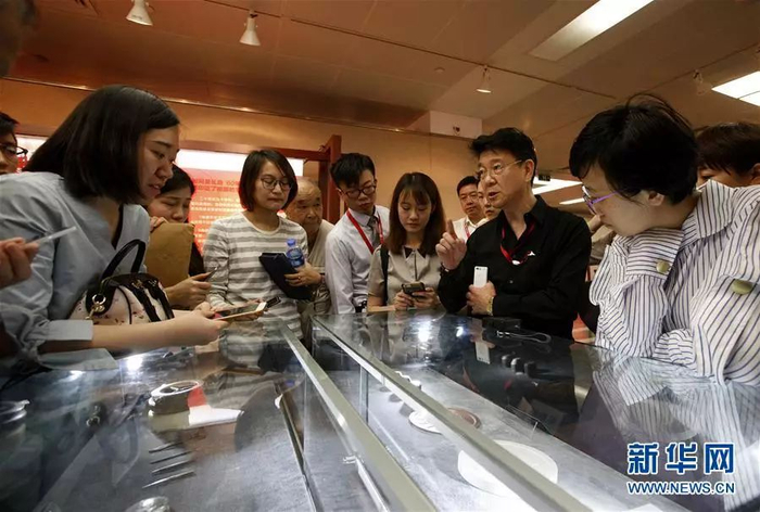 10月9日,中国印钞造币总公司正高级工艺美术师罗永辉(右二)在展览现场向观众讲解硬币模具的制作工艺。近日,由中国人民银行货币金银局主办、中国印钞造币总公司承办的“国币之尊艺术之美”——人民币硬币发行60周年全国巡展在上海图书馆举行,展示了自1957年12月1日正式发行人民币硬币起,已经发行的4套流通硬币、96个品种108枚普通纪念币和2000余种贵金属纪念币。