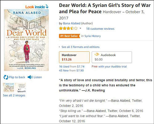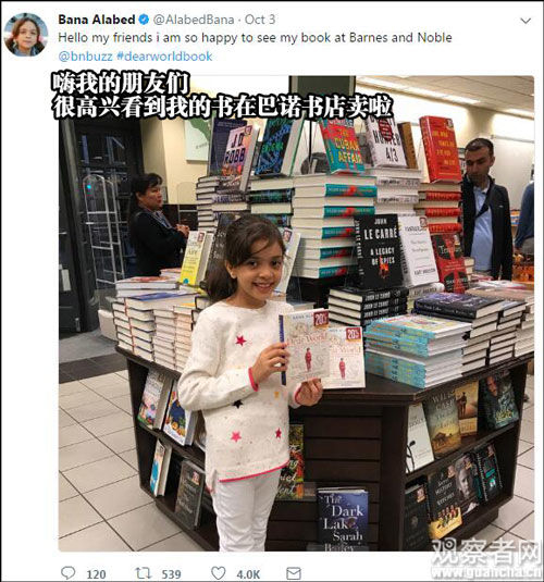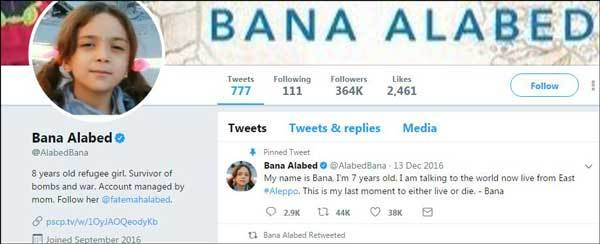 她叫巴娜·阿拉贝德(Bana Alabed),来自叙利亚,刚刚过了8岁生日。叙利亚内战期间,她畅通无阻地在战区发推,讲述自己对战争的恐怖以及和平的渴望,一发成名。华盛顿邮报称她为“我们时代的安妮·弗兰克”。