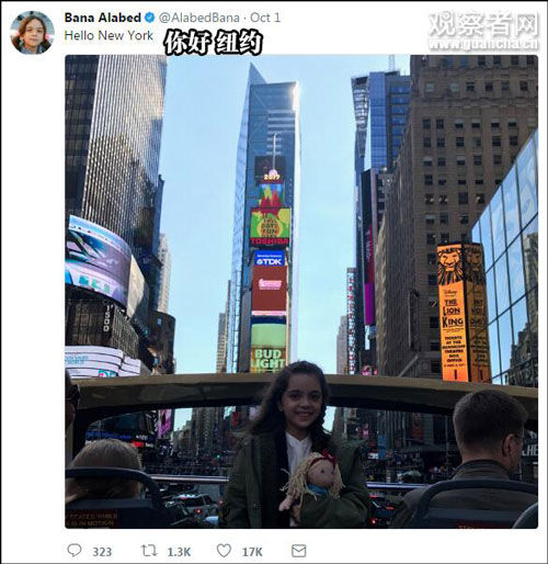 据纽约时报10月6日报道,巴娜的纽约之行格外愉快。一路上,她哼着贾斯汀·比伯的歌,滔滔不绝地谈论自己的土耳其的新学校。但当她说起阿勒颇(叙利亚城市)时,“她变得忧郁而小心翼翼”。