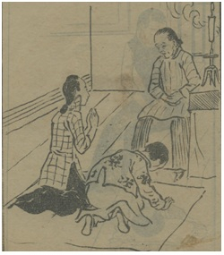 晚清乡民向女巫请求庇佑(《女巫宜惩》,《舆论时事报图画》,1909年第14期。)