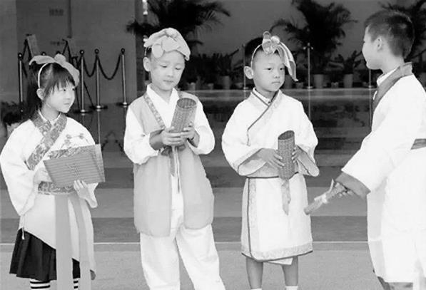 第三周,听老师讲《弟子规》的故事,背《三字经》,唱《上学歌》、《问好歌》、《课前歌》、《上课歌》……这一周,全校孩子去了孔庙,入泮礼。孩子穿上汉服正衣冠、拜孔子、点朱砂、敬师长、开笔大礼、诵读《弟子规》。“隆重而庄严的仪式感,让孩子们感受到我是一名小学生了,为自己成为小学生而骄傲。”105班班主任赵晓娜说。